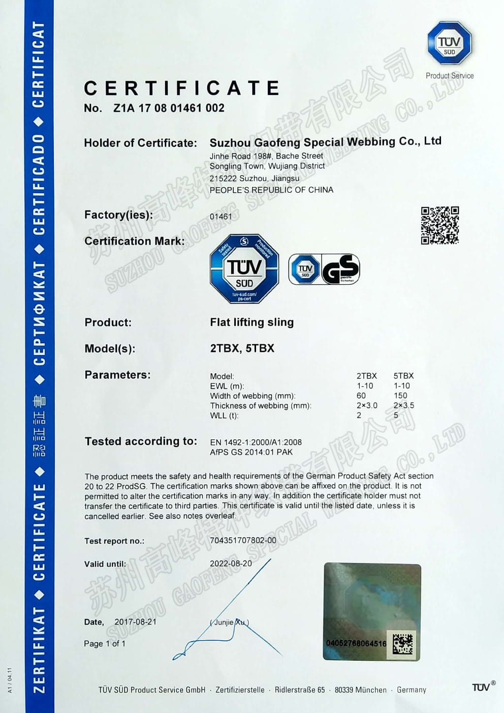 Flat Lifting Sling TUV-GS